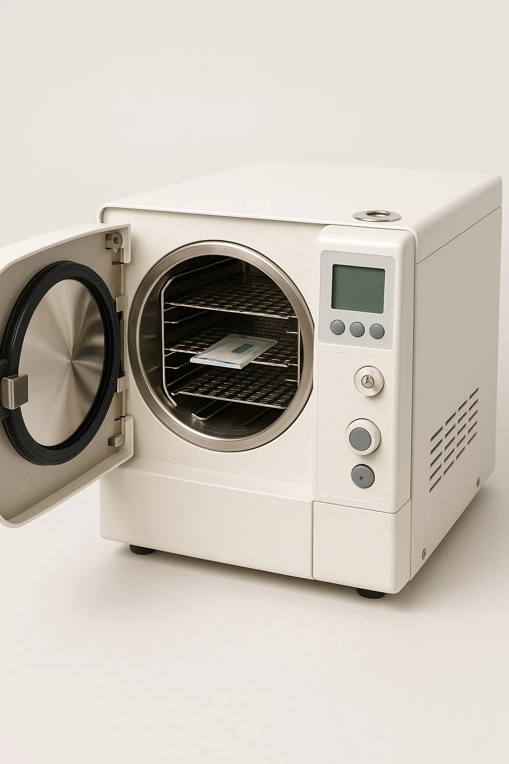 Một thiết bị y tế chuyên dụng khử trùng dụng cụ nha khoa có thể tái sử dụng bằng hơi nước bão hòa áp suất cao.