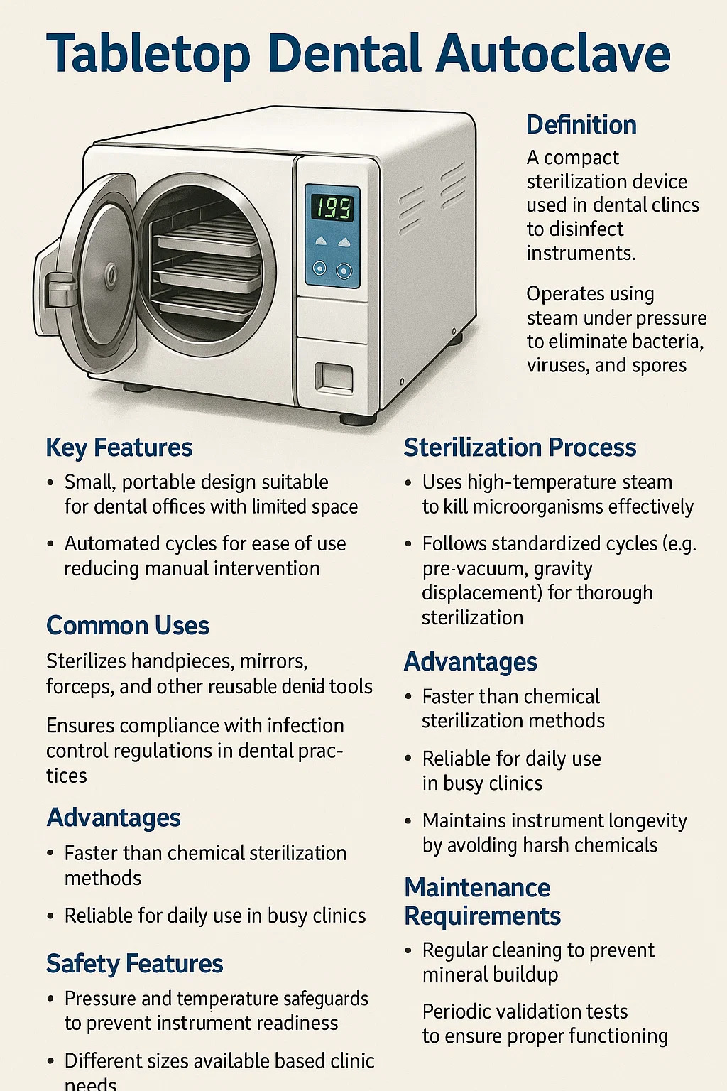 Một thiết bị khử trùng nhỏ gọn được sử dụng trong các phòng khám nha khoa để khử trùng dụng cụ.