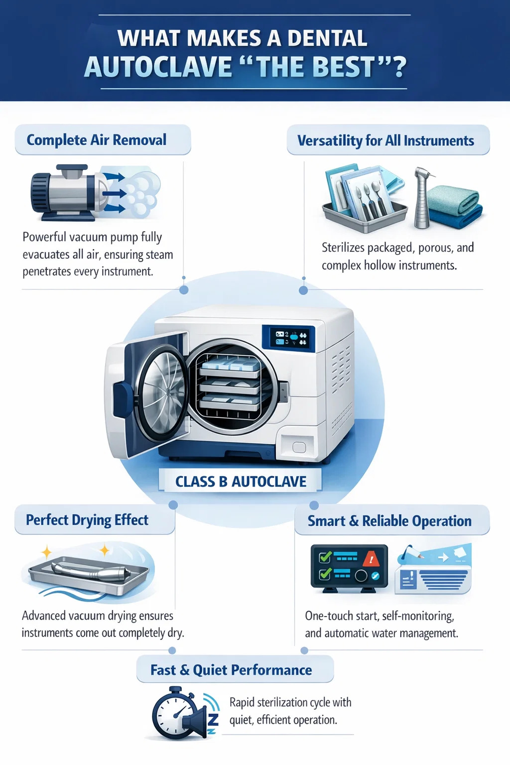 Nồi hấp nha khoa hàng đầu không kén chọn dụng cụ.